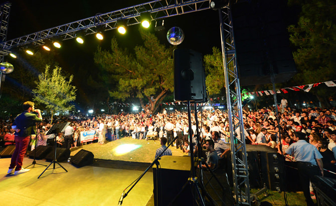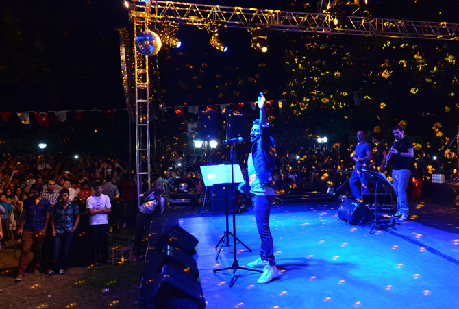 Kendisine yer bulamayan gençler Yusuf Güney’i görmek için ağaçlara tırmanırken, ön sıralarda yer tutan gençler zaman zaman genç şarkıcıya eşlik ettiler.